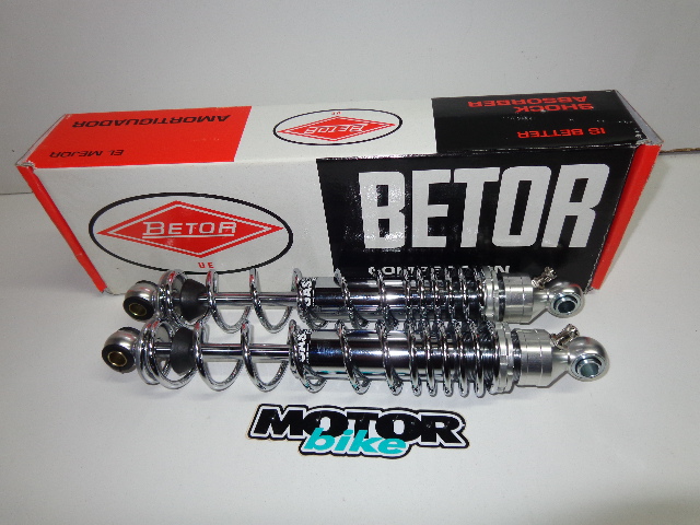 | Amortiguadores betor gas competición de trial, de 34 cm eje a eje, con muelle discontinuo y cuerpo de aluminio , ideal para trial de clásicas. |