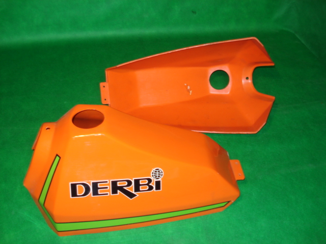 CARCASA DEPOSITO GASOLINA DERBI YUMBO C5 Y CX YUMBO, ESTÁ NUEVO CON SUS ANAGRAMAS.