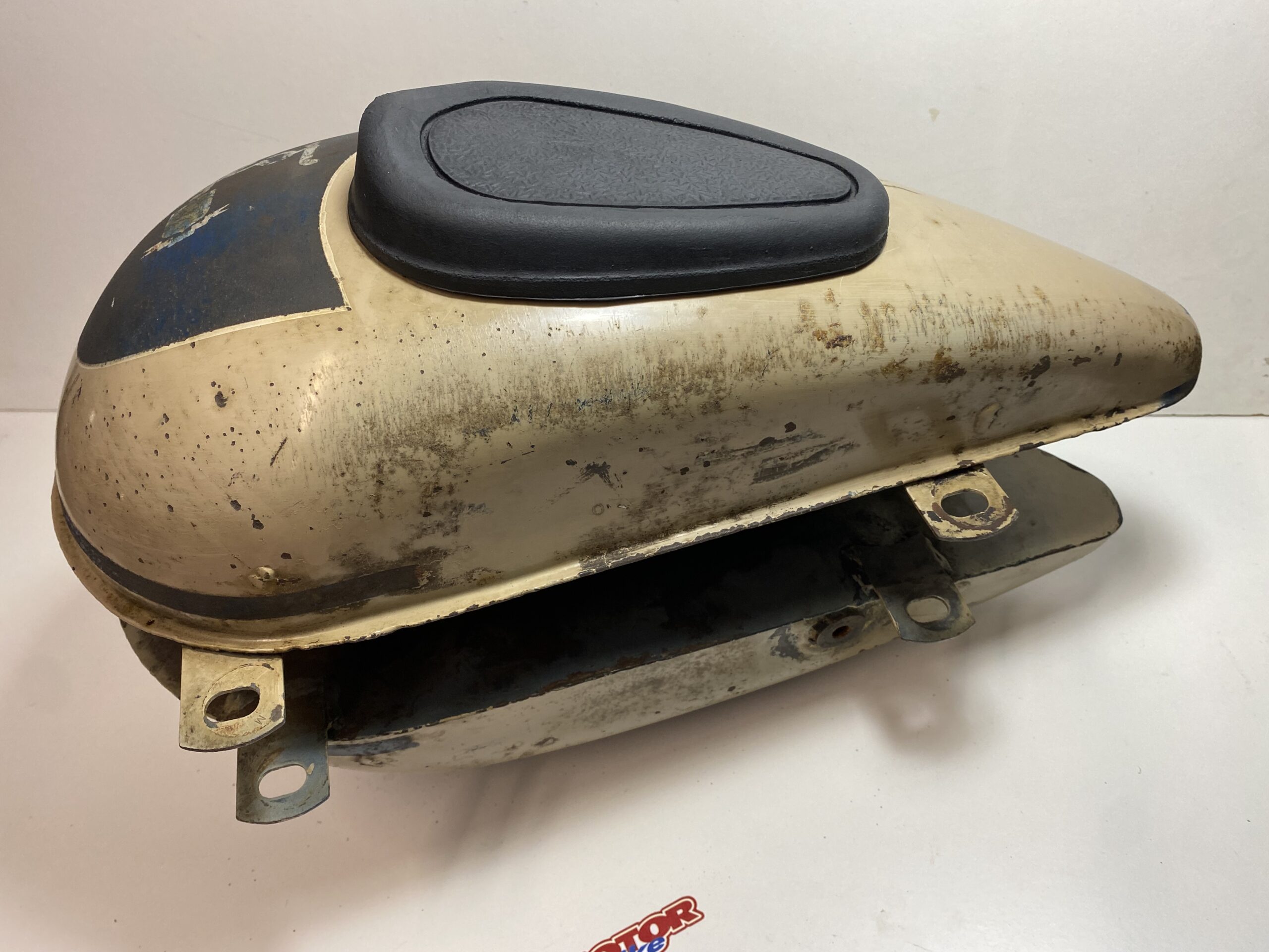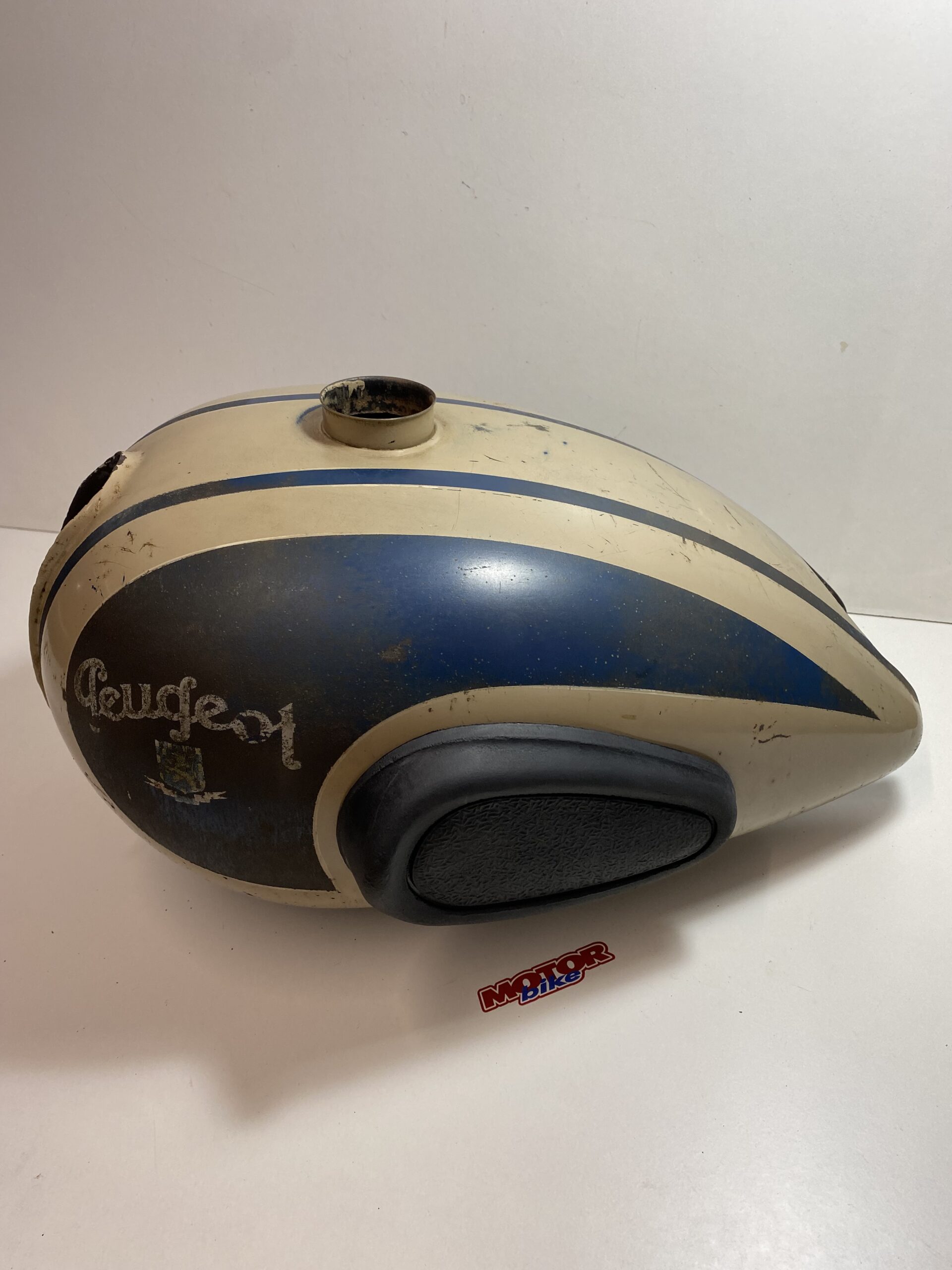 Depósito de gasolina para moto antigua Peugeot 125 años 50, con pintura original, tiene las gomas de las cachas laterales nuevas.