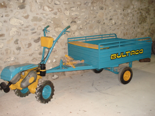 Motocultor con remolque y azada bultaco, está pintado, y en buen estado, pero no és una restauración.Motor funciona bien.